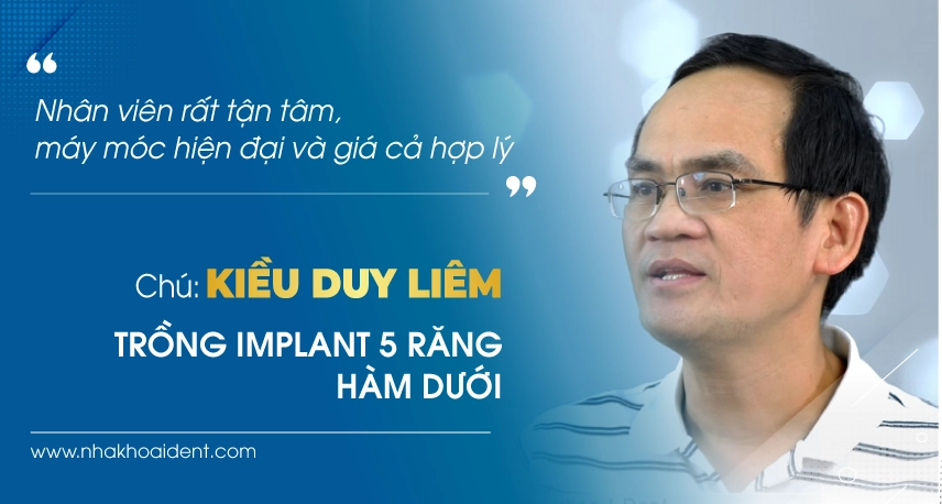 Toàn bộ quá trình phẫu thuật cấy trụ Implant, anh không hề có cảm giác đau nhức hay khó chịu, bởi bác sĩ Tùng thực hiện rất nhẹ nhàng, êm ái. Kết quả phục hình cuối cùng cũng mang đến cho anh Liêm sự hài lòng tuyệt đối. Trụ Implant tích hợp vào xương rất tốt, ăn uống thoải mái và dùng được nhiều loại thức ăn khác nhau.