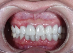 - Tình trạng răng trước đây:Bọc răng sứ bị nhiễm trùng, đen viền nướu