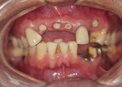 - Tình trạng mất răng:Mất các răng số R16, R17, R26, R27 và R37. Bị tiêu xương hàm ở vị trí mất răng.