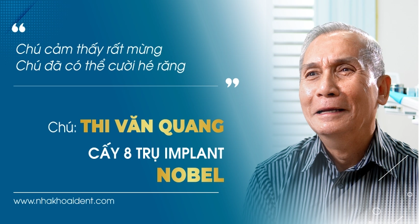 Chú Quang đã dành lời yêu thương cho bác sĩ I-DENT ngay sau khi vừa hoàn thành xong hàm răng Implant của mình: “Bác sĩ làm gì cũng giải thích đàng hoàng, đưa nguyên hộp Implant cho mình coi. Đến khi cắm trụ êm ru à, đâu có động gì đâu. Bác sĩ quá giỏi”.