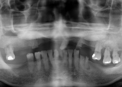 - Phương hướng điều trị:Phục hồi toàn bộ răng mất bằng 10 trụ Implant và bọc lại răng sứ từ răng số 13 đến số 17.