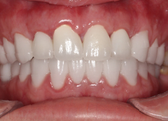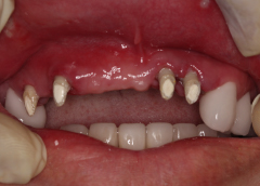 - Tình trạng mất răng:Mất hết răng hàm trên và tụt nướu do mang hàm tháo lắp lâu năm.