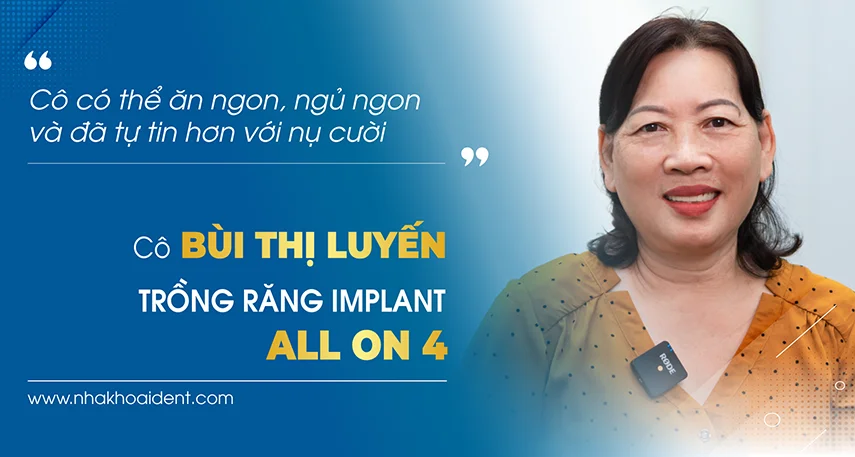 Sau khi thay đến hàm tháo lắp thứ 3 và không có dấu hiệu tốt hơn, cô Luyến mới quyết định tìm hiểu về phương pháp trồng răng Implant cố định. Biết được đây là phương án hiện đại nhất hiện nay, có thể giúp cô ăn uống tốt hơn và sử dụng cho đến trọn đời mà không cần thay mới.