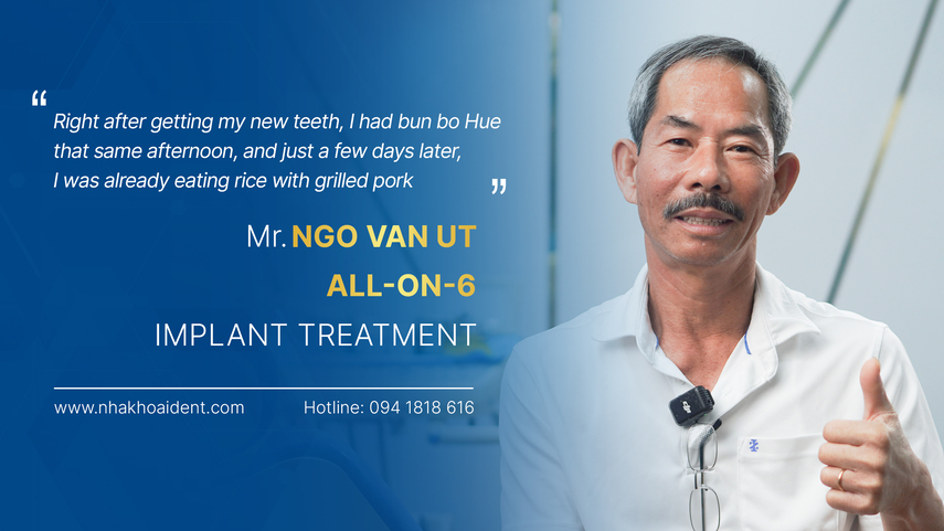 On the day his Implant treatment was completed, Mr. Út could not hide his surprise and happiness. That very afternoon, right after receiving his new teeth, he immediately enjoyed a beloved hometown dish that he had long missed: