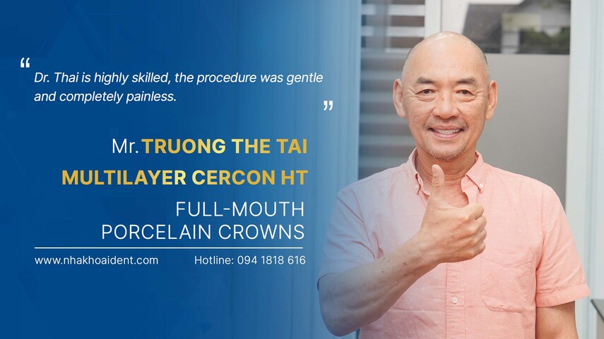Dr. Mai Hồng Thái was the one who directly accompanied Mr. Tài on his porcelain crown journey. From examination and consultation to treatment planning, with solid expertise, extensive experience, and meticulous care in every step, the doctor delivered results that fully met his expectations.