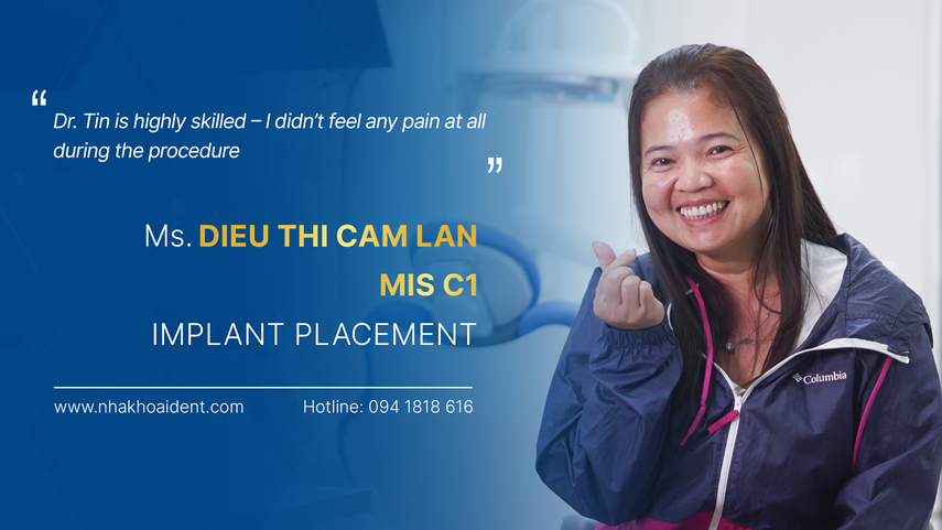 Initially, Ms. Lan carried many worries due to her long-standing fear of pain and concerns about surgical risks. However, encouragement from her older brother — Mr. Diểu Minh Tâm, who had successfully completed Implant treatment at the clinic — along with thorough consultation from Dr. Tín helped reassure her. She was carefully informed about treatment options, listened to attentively, and felt no pressure in making her decision.