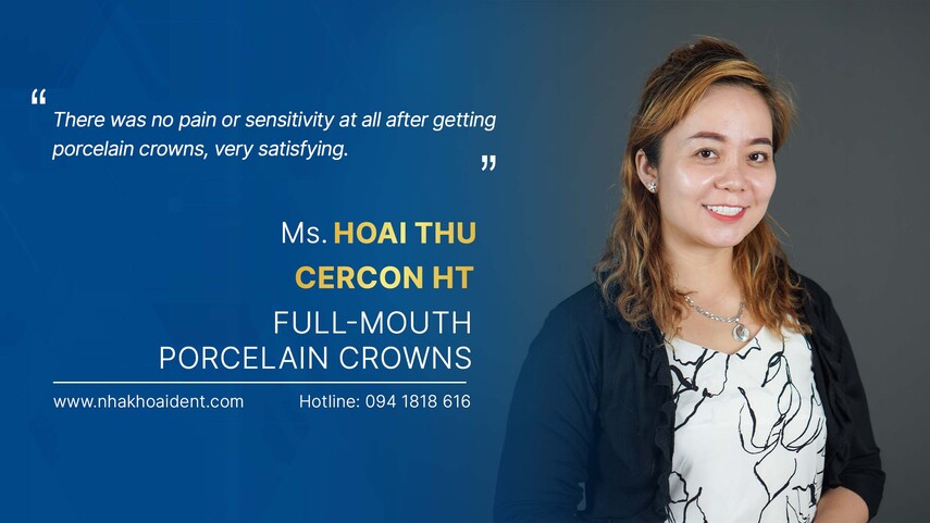 Ms. Hoài Thu is someone who places great importance on health and safety, especially oral health. Therefore, when choosing a dental clinic for porcelain crowns, she conducted thorough research to ensure she selected a reputable and high-quality provider.