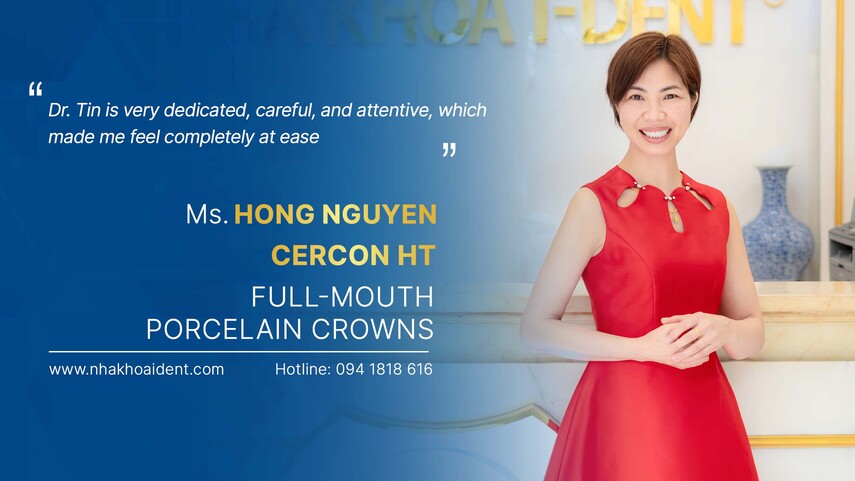 Not only did she achieve the successful aesthetic results she desired, but what satisfied Ms. Hồng Nguyễn the most was the service quality at the clinic. From the doctors to the assistants and reception staff, everyone cared for her attentively, like a member of their own family—making her always feel safe and comfortable every time she visited I-Dent.