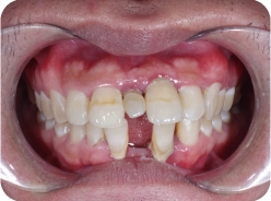• Upper jaw porcelain crown is damaged and infected