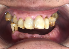 Trước đây, anh Dũng từng bọc răng sứ nhưng bị viêm nha chu và nhiễm trùng nặng, dẫn tới hàm răng lung lay và gãy rụng chỉ còn vài chiếc.