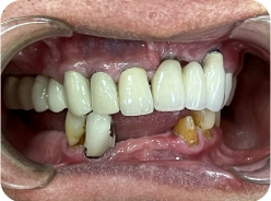 Qua thăm khám kỹ lưỡng của bác sĩ Thái còn thấy được xương hàm của anh đã bị tiêu khá nhiều. Do đó, để đảm bảo khả năng ăn nhai và sức khỏe cho anh, bác sĩ Thái đã chỉ định nhổ các răng lung lay nặng và cấy ghép Implant All On 4. Với 4 trụ Implant giúp khôi phục toàn hàm răng mất và kích thích xương hàm phát triển.