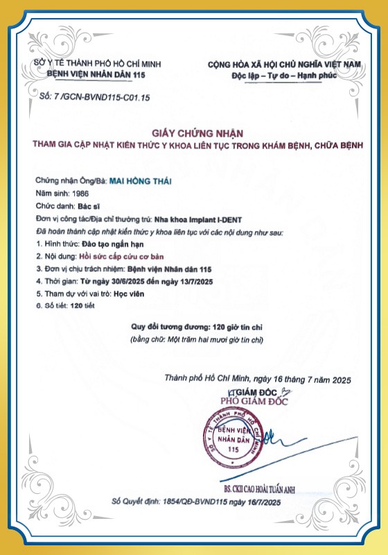 BẰNG CẤP VÀ CHỨNG CHỈ CỦA BÁC SĨ CKI MAI HỒNG THÁI