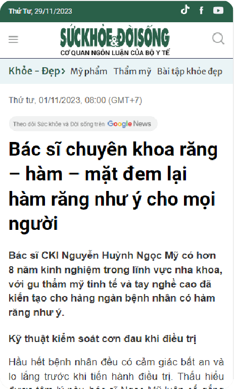 BÁO CHÍ ĐÁNH GIÁ VỀ BÁC SĨ CKI NGUYỄN HUỲNH NGỌC MỸ