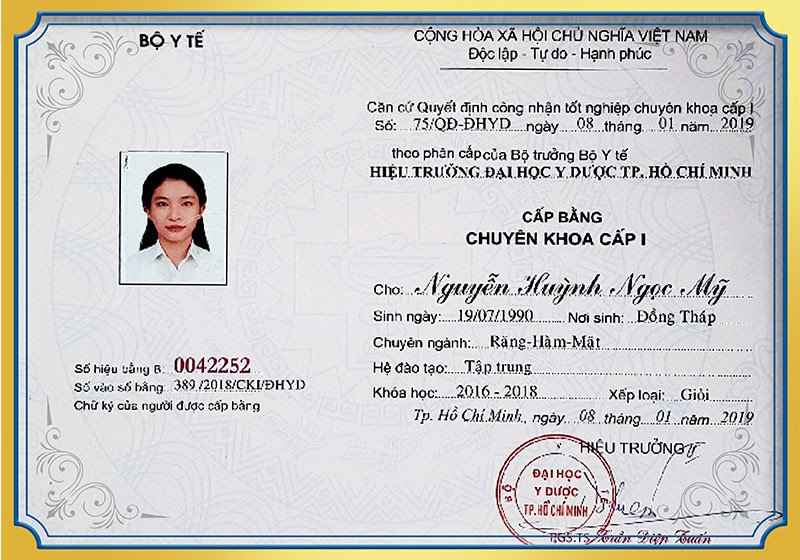 BẰNG CẤP – CHỨNG CHỈ CỦA BÁC SĨ CKI NGUYỄN HUỲNH NGỌC MỸ