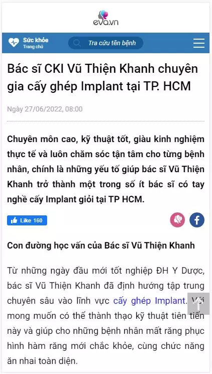 BÁO CHÍ ĐƯA TIN VỀ BÁC SĨ CKI VŨ THIỆN KHANH