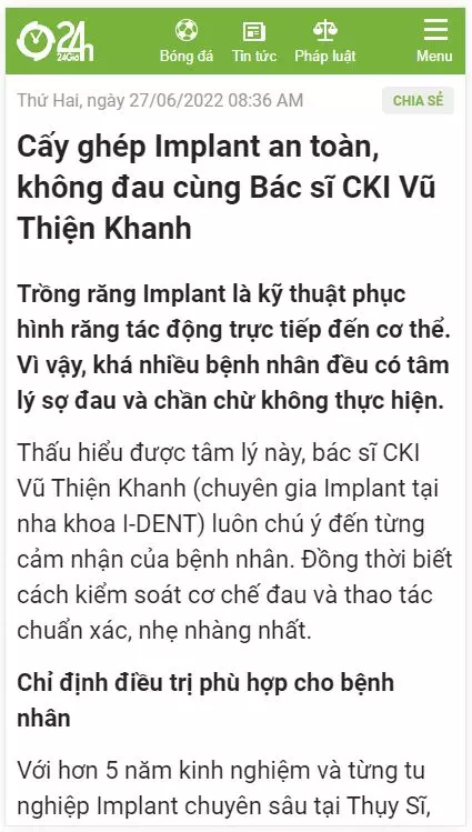 Trực tiếp Bác sĩ Khanh đã thực hiện thành công hơn 2.000 ca Implant, cho hàng ngàn bệnh nhân trong và ngoài nước.