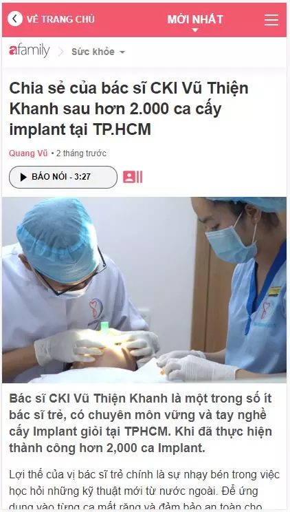 BÁC SĨ CKI VŨ THIỆN KHANH THỰC HIỆN HƠN 2.000 CA IMPLANT THÀNH CÔNG