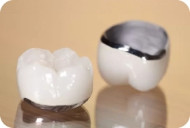 • Phủ bên ngoài là lớp sứ trắng sáng, mang lại độ trắng bóng như răng thật.