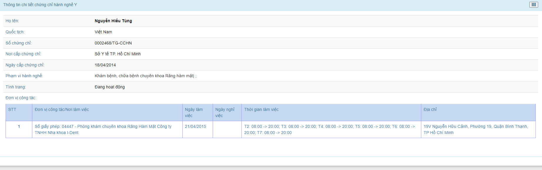 Kiểm tra xem thông tin bác sĩ và Lịch sử công tác có đúng với công bố của nha Khoa Không.
