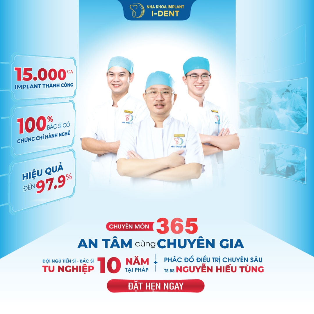 Hãy trồng răng an toàn, an tâm cùng Nha Khoa I-Dent – hệ thống chăm sóc toàn diện Implant 365++. Chúng tôi luôn sẵn sàng đồng hành cùng Quý khách từ bước đầu tư vấn cho đến khi hoàn thiện nụ cười, và tiếp tục hỗ trợ lâu dài sau điều trị. Đội ngũ I-Dent hân hạnh chào đón khách hàng trong và ngoài nước, cam kết mang đến trải nghiệm nha khoa chuẩn quốc tế, chi phí hợp lý.