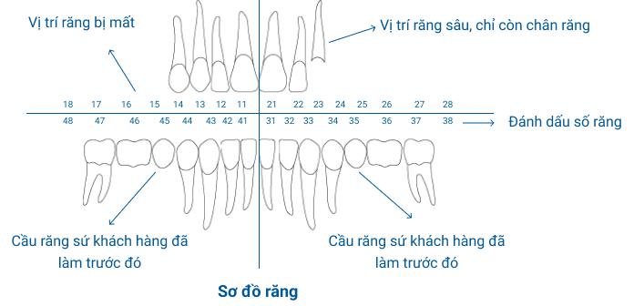 Sau đó lập sơ đồ răng riêng biệt cho bệnh nhân, từ đó xác định vấn đề và lên phương án điều trị.