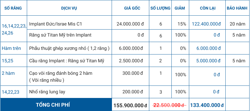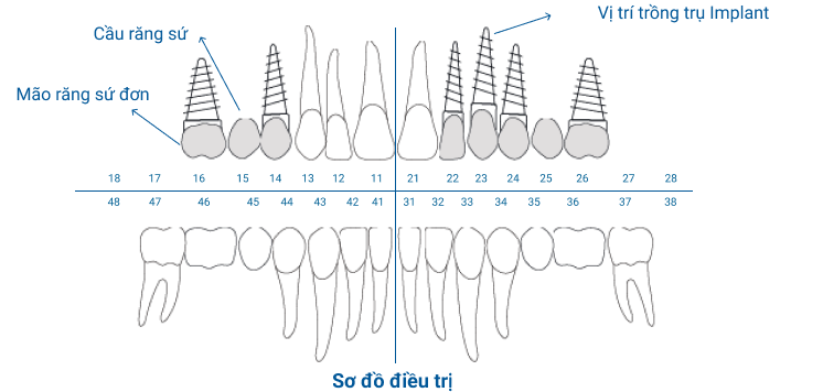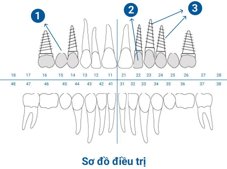 Dựa vào sơ đồ điều trị, Nha Khoa I-Dent sẽ liệt kê tất cả dịch vụ cần thiết cho từng vị trí răng và đơn giá làm răng implant tương ứng.